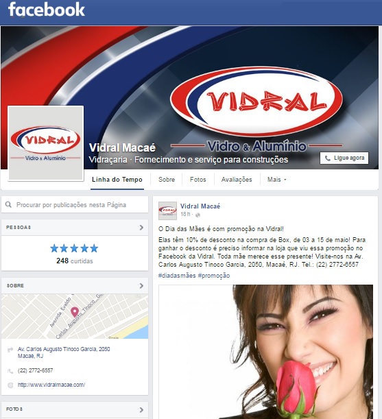 A Vidral Macaé é a nova cliente de gerenciamento de mídias sociais da FV2 Comunicação. A vidraçaria já conquistou vários clientes por intermédio de sua Fan Page, que aumentou sua visibilidade na internet e continua agrupando novos seguidores.